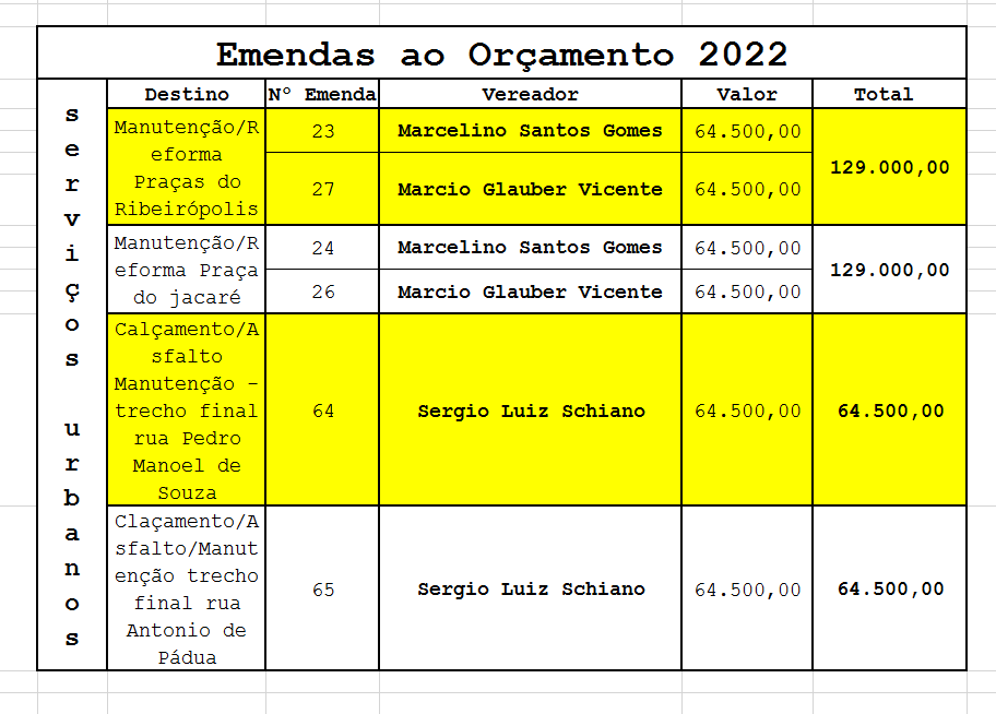 tabela das emendas ao orçamento de 2022